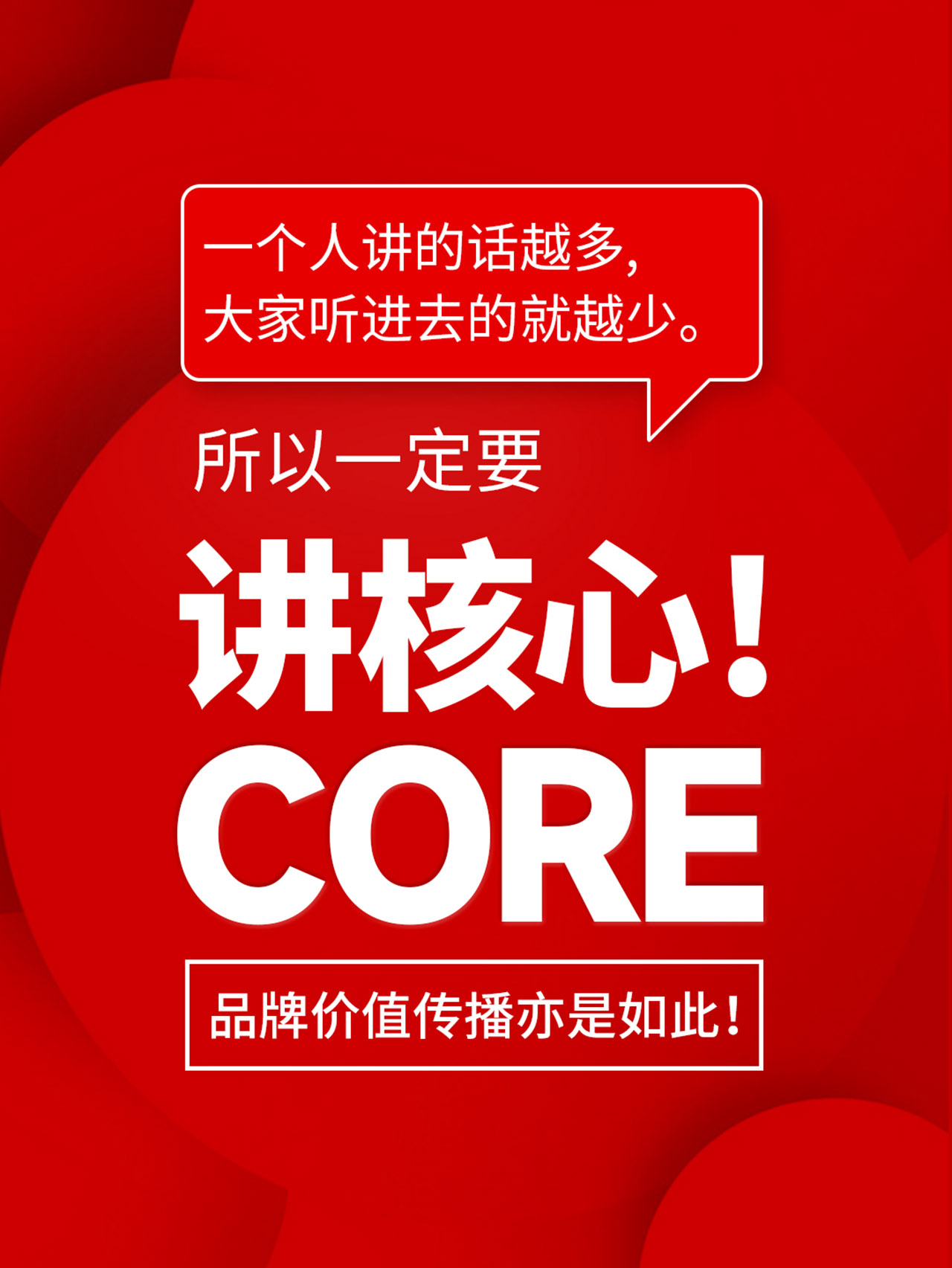 品牌广告策划设计三步曲,找到核心,创造核心,传播核心!一个人讲的话越多,人们能记住的就越少,品牌打造与传播亦是如此,所以,要抓核心,要讲核心! https://www.hexindian.com 武汉核心点品牌策划公司,为品牌营销创造核心亮点,中部地区专业的品牌全案营销策划设计服务公司!